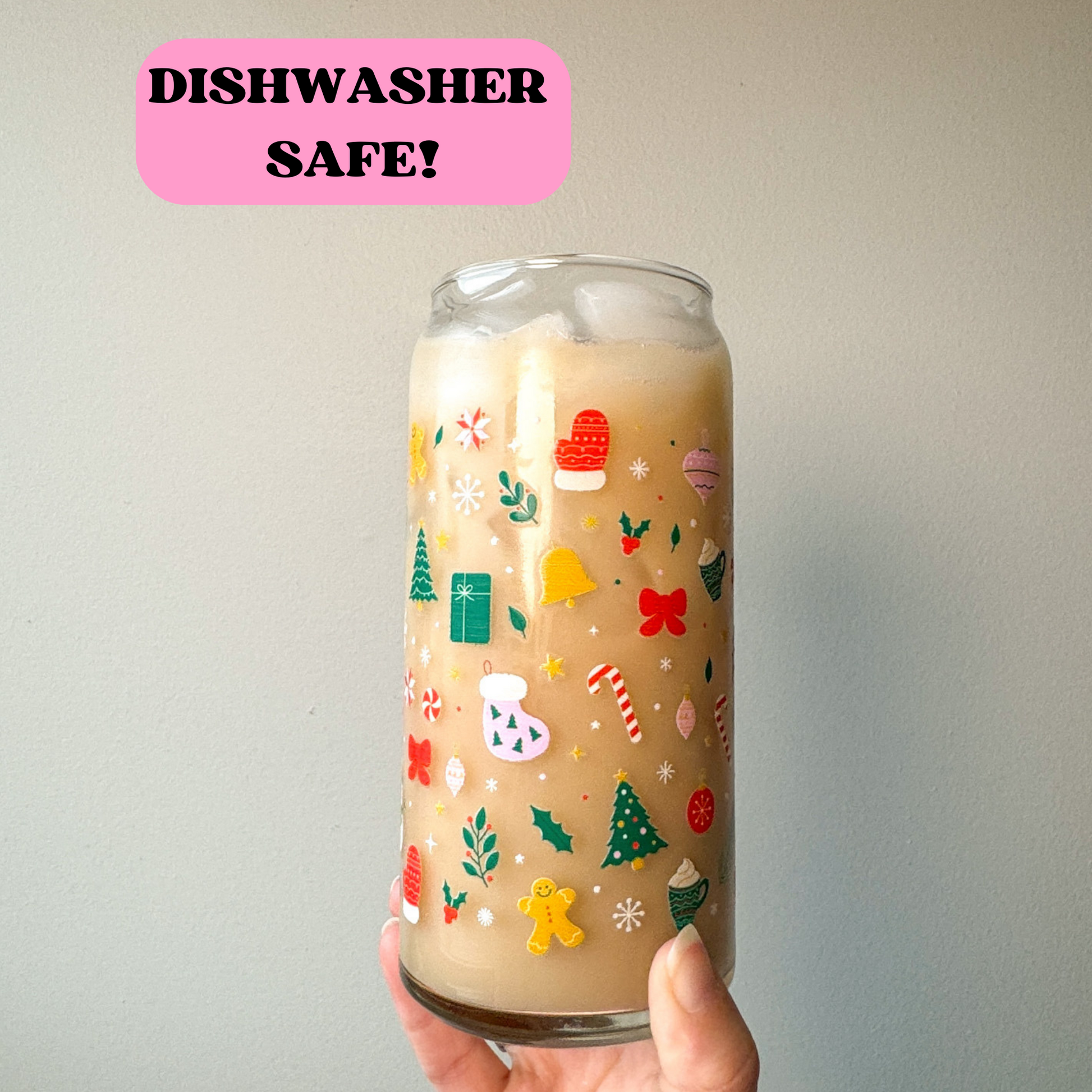 20 oz Holiday Doodles Glass Cup