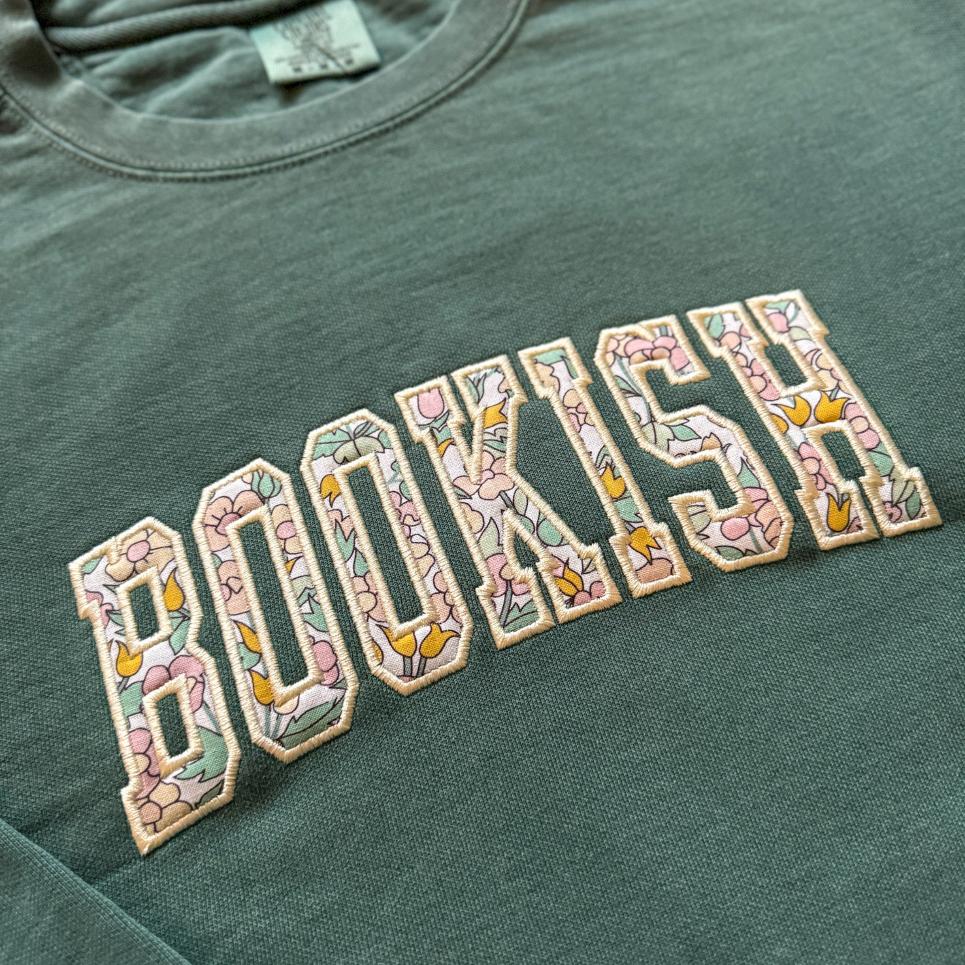 Bookish Applique Comfort Colors Embroidered Crewneck