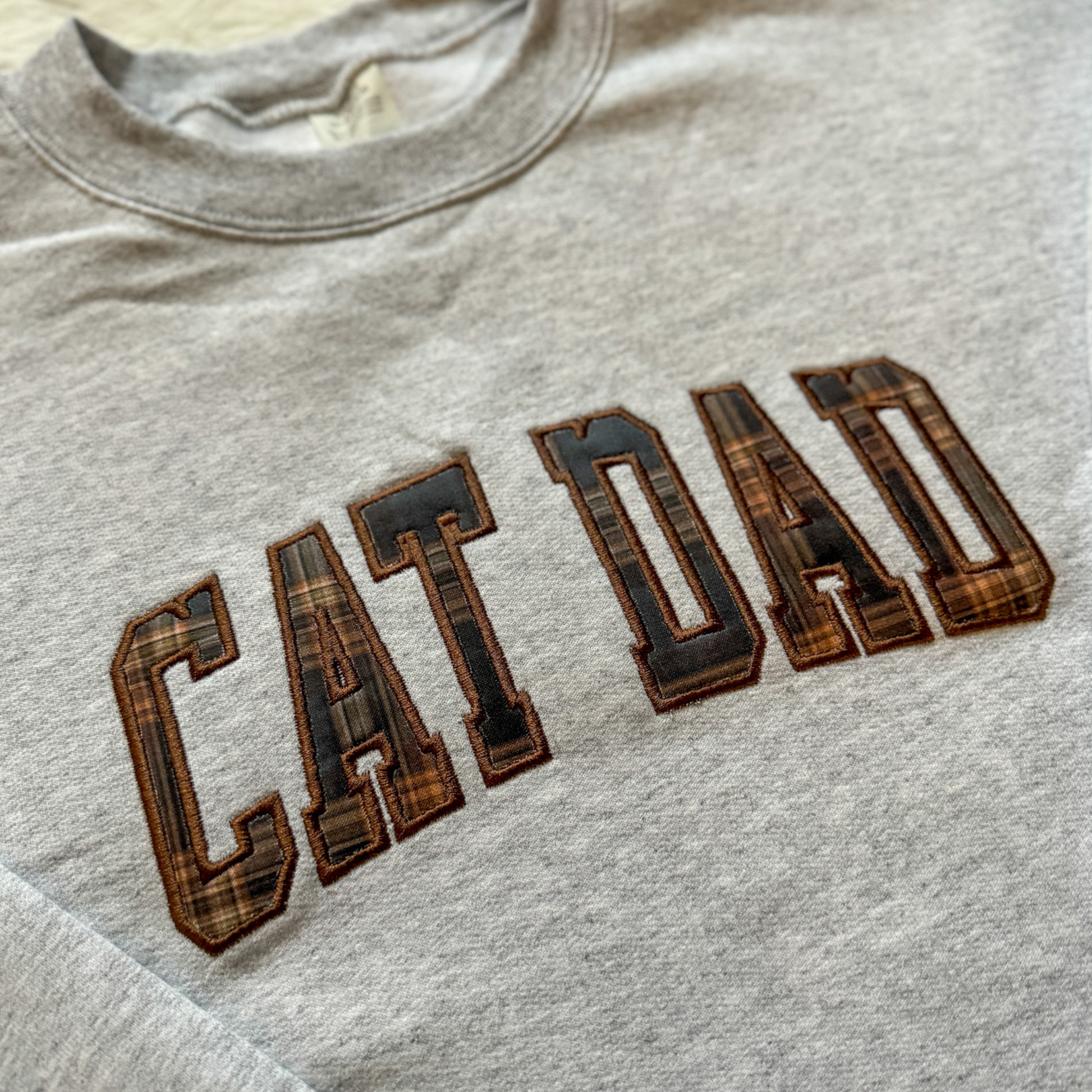Design is embroidered on a cozy crewneck with fabric & brown thread.