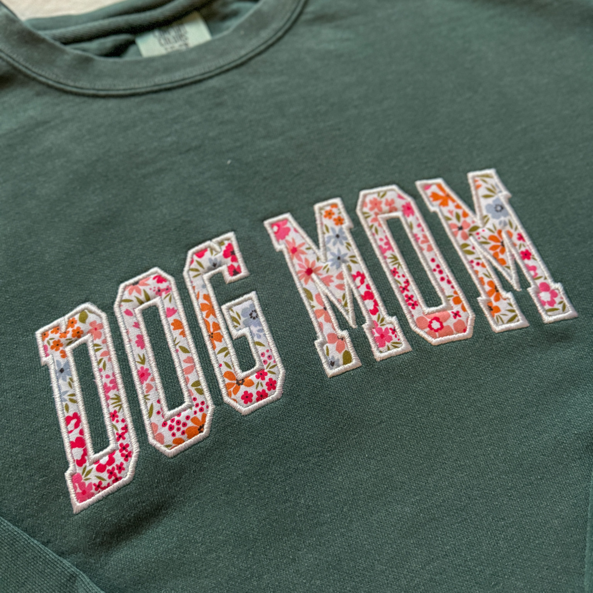 Dog Mom Applique Comfort Colors Embroidered Crewneck