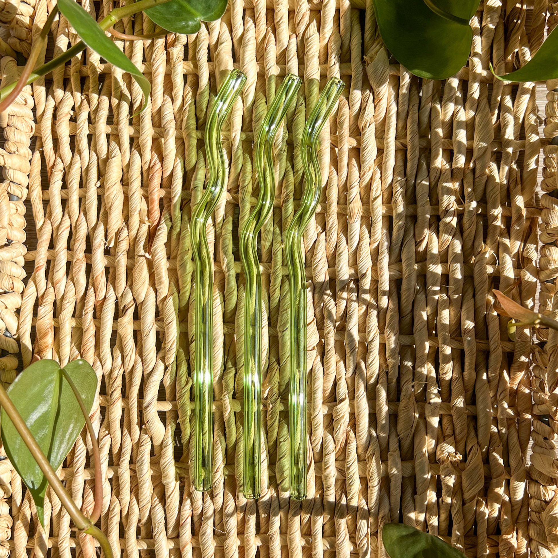 8" green squiggly glass reusable straw
