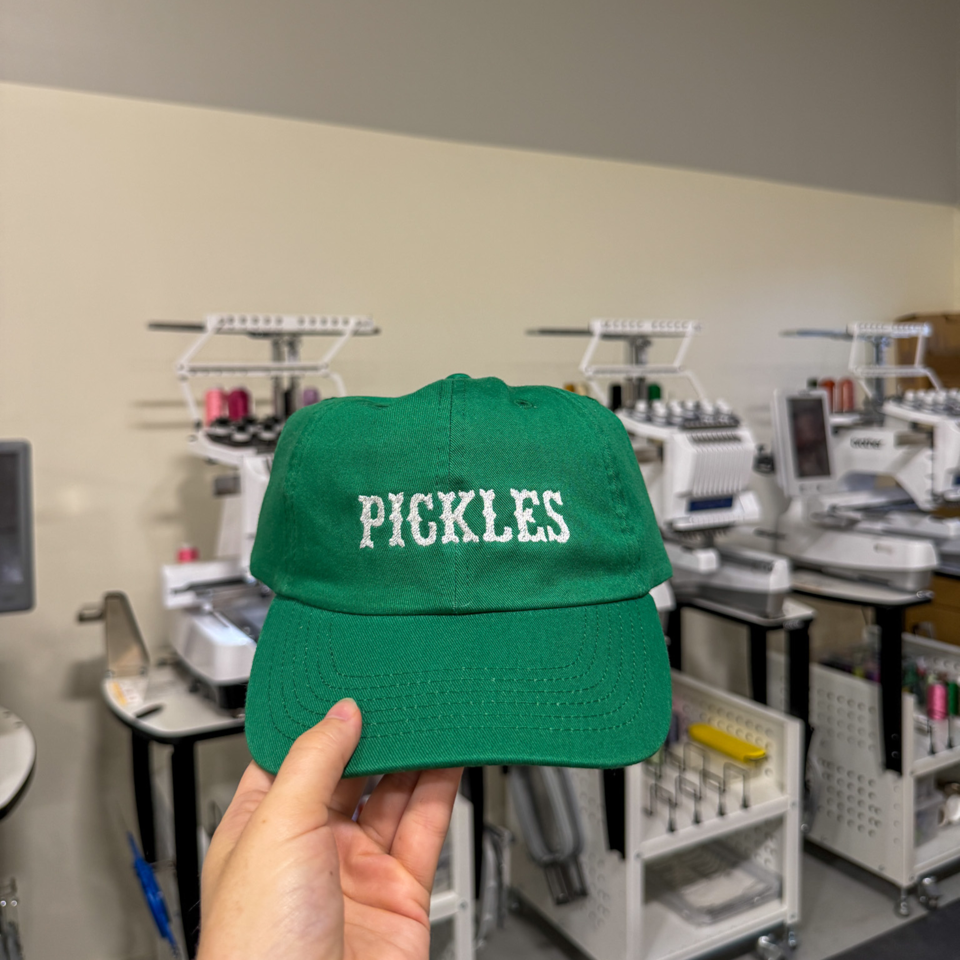 • Color shown: Green with white thread